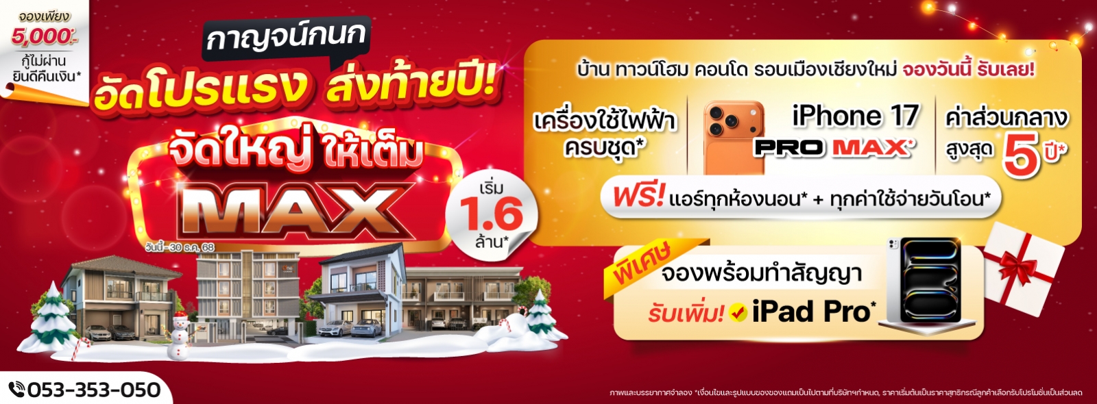 อัดโปรแรงส่งท้ายปี เป็นเจ้าของบ้าน ทาวน์โฮม และคอนโดวันนี้ รับเลย iPhone 17 Pro Max* | เริ่ม 1.6 ล้าน*